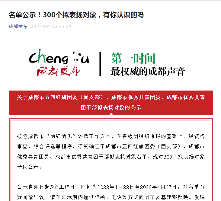 喜報我公司楊春鋒同志在成都市“兩紅兩優(yōu)”評選工作中,被評為成都市優(yōu)秀共青團員,現于“成都發(fā)布”官方平臺進行公示。楊春鋒總經理助理楊春鋒同志,于2016年畢業于四...